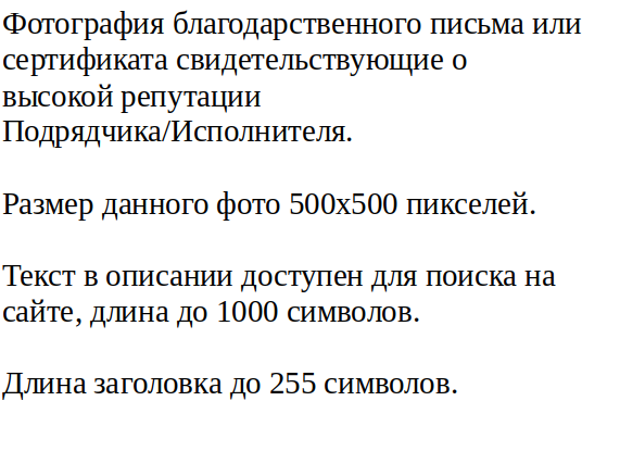 Благодарственные письма и Сертификаты DEMO наименование компании строки Референс-листа "DEMO заголовок ":